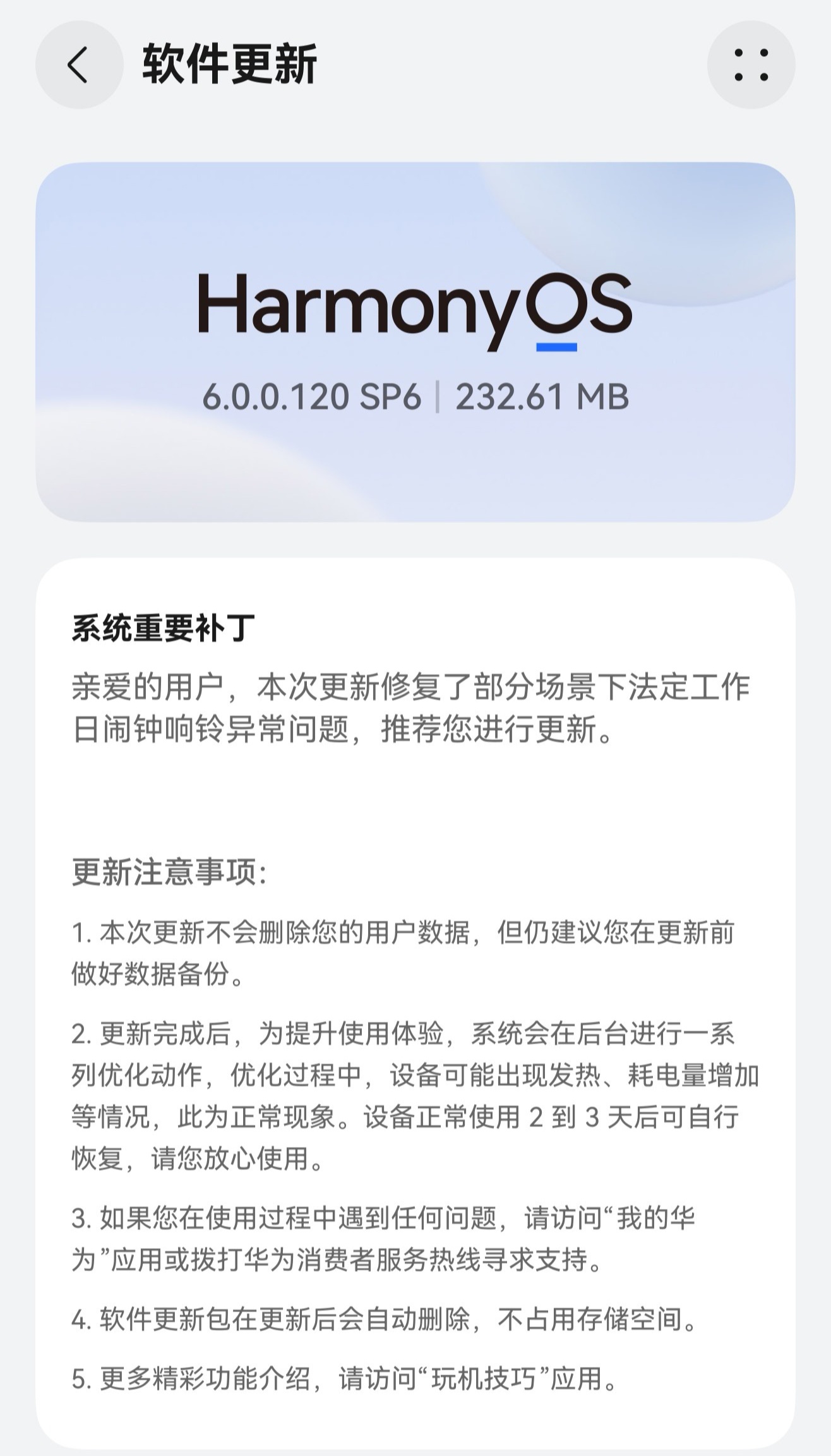 华星配资 华为 Mate70 Pro+ 手机推送鸿蒙 HarmonyOS 6.0.0.120 SP6 补丁包 手机 来源:人人顺配资 网站:天宇优配 日期:2026-01-05 10:23:40 查看:92